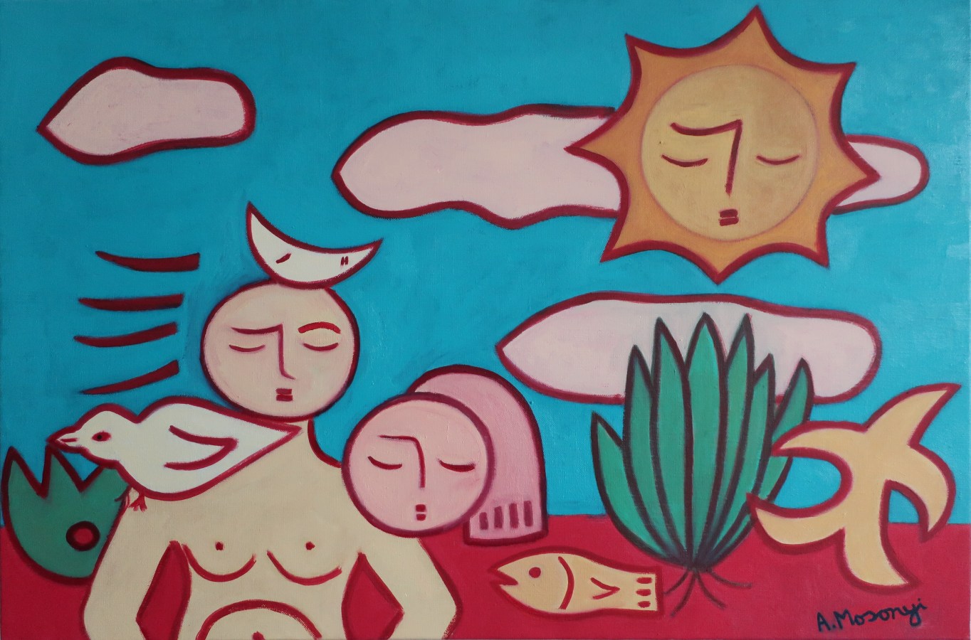 Born in Great Yarmouth in 1955. Daughter of musicians, she grew up in New York where she studied painting with Jean Liberté from the age of 9. Her family moved back to England in 1965. She has been living in the Paris area since 1973 and her studio is by the Flea Market in Saint Ouen.