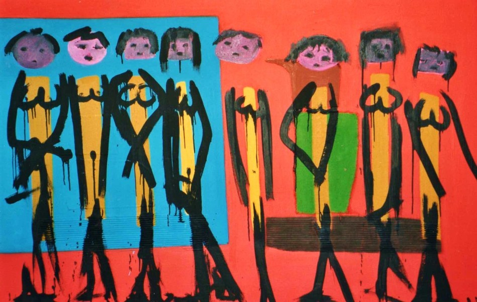 » jeunes filles de l’est, 2003-2004 collage, huile sur toile 146 x 89 cm